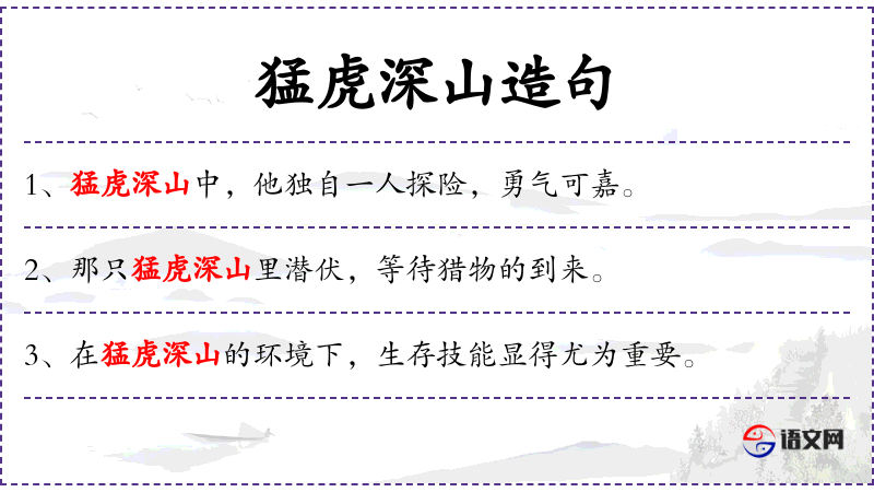 1. 【猛虎深山】 - 比喻勇武而势盛。