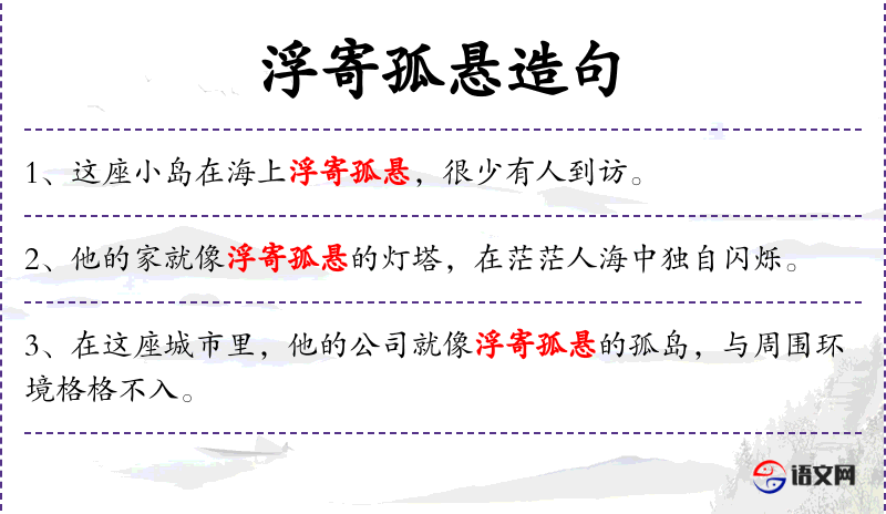 浮:漂浮不定;寄:寄存;孤:孤独;悬:吊挂。漂浮似地悬挂着。形容做事情没有基础,花架子大。也指形势急迫,很危险。