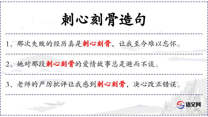 - 刺心刻骨:形容印象极其深刻,难以忘怀。