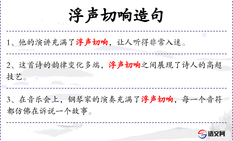 5. 【浮声切响】 浮声:平声;切响:仄声。指古汉语中的平仄声。也泛指音韵的纤细低沉和洪亮高亢。