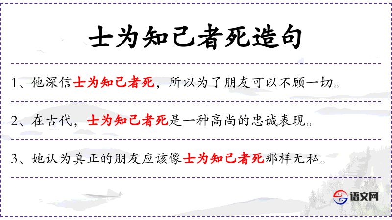 句子:“[老师教导我们,士为知己者死是一种值得学*的品质。]”