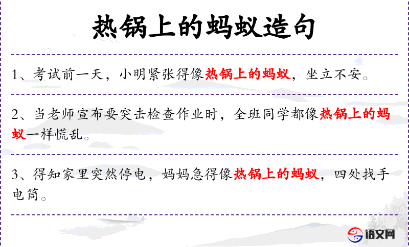 4. 【热锅上的蚂蚁】 - 形容心里烦躁、焦急,坐立不安的样子。