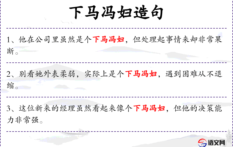 1. 【下马冯妇】 - 以之比喻重操旧业的人。