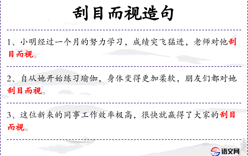 - 文化背景:在**文化中,“刮目而视”是一个常用的成语,表示对某人或某事的评价有了显著的提升。