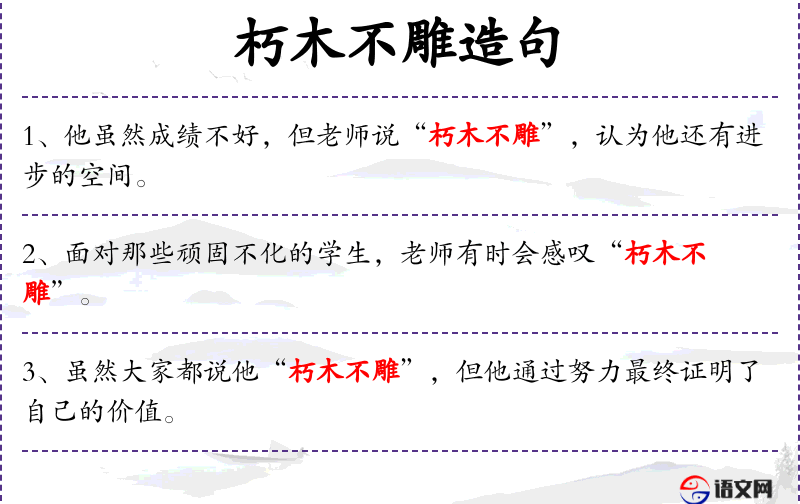 5. 【朽木不雕】 朽坏的木头无法雕刻。比喻人不上进,无法成材。