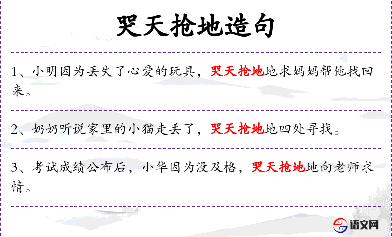 - 哭天抢地:成语,形容极度悲伤或激动。