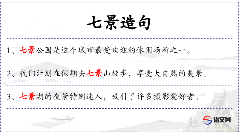 1. 【七景】 - 指日﹑月与金﹑木﹑水﹑火﹑土五大行星。