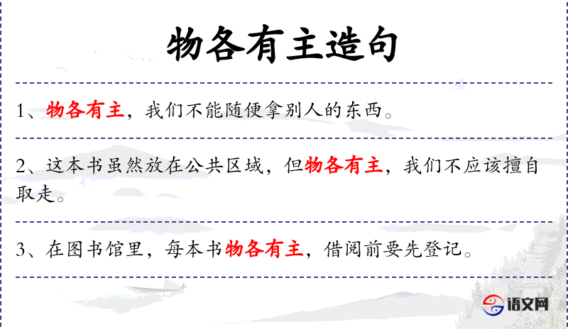 7. 【物各有主】 主;主人。世间万物各有其所属。