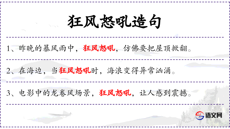 4. 【狂风怒吼】 - 狂:气势猛烈。形容大风呼啸猛烈。