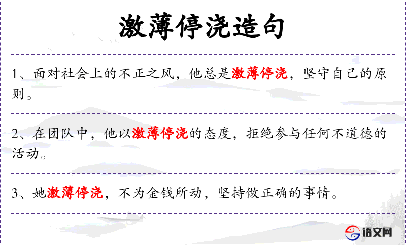 1. 【激薄停浇】 - 形容振作人心,挽回不良的社会风气。
