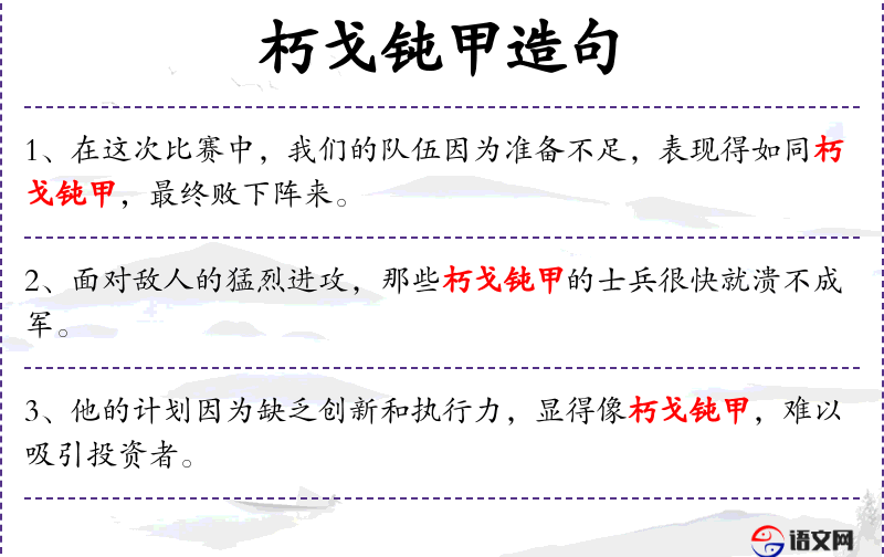 3. 【朽戈钝甲】 比喻装备极劣的军队。