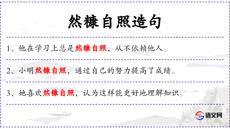 2. 【然糠自照】 - 然:同“燃”,烧;糠:谷壳。烧糠照明。比喻勤奋好学。