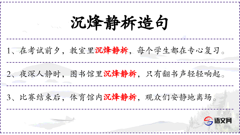 4. 【寂静】 - 没有声音;很静:~无声。