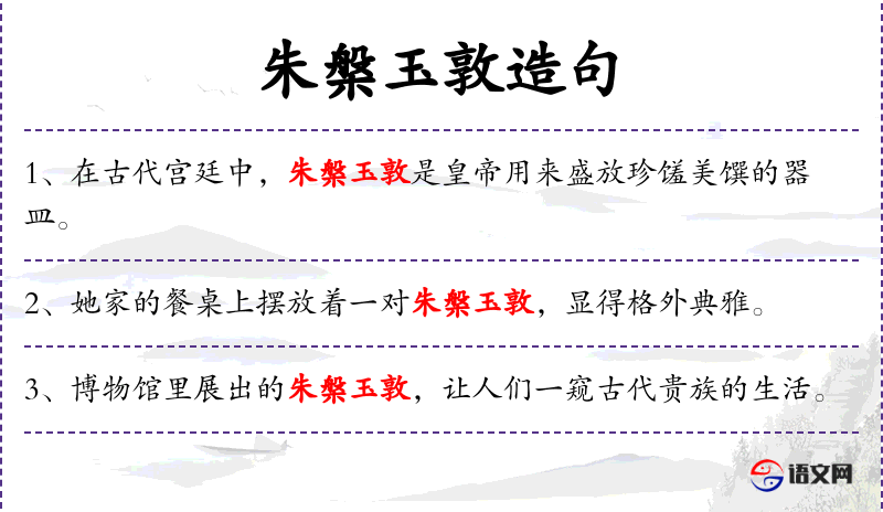 2. 【朱槃玉敦】 - 珠槃:用珍珠装饰的盘子;玉敦:玉制的盛器。特指古代天子、诸侯歃血为盟时所用的礼器。