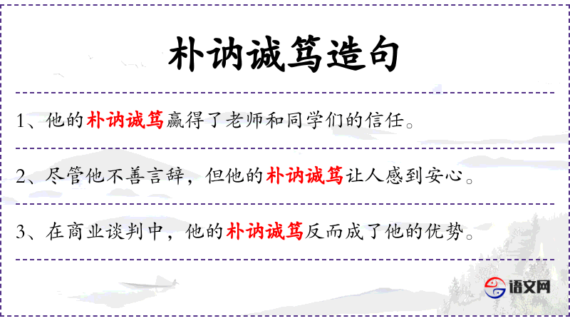 6. 【朴讷诚笃】 - 为人朴实敦厚,不善言词。