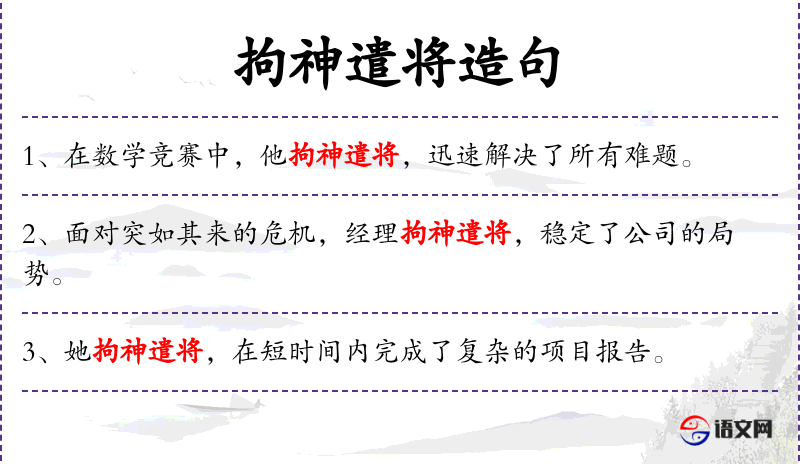 - 拘神遣将:这个成语源自**古代的军事术语,后来被广泛用于形容全力以赴、调动一切资源解决问题的情景。