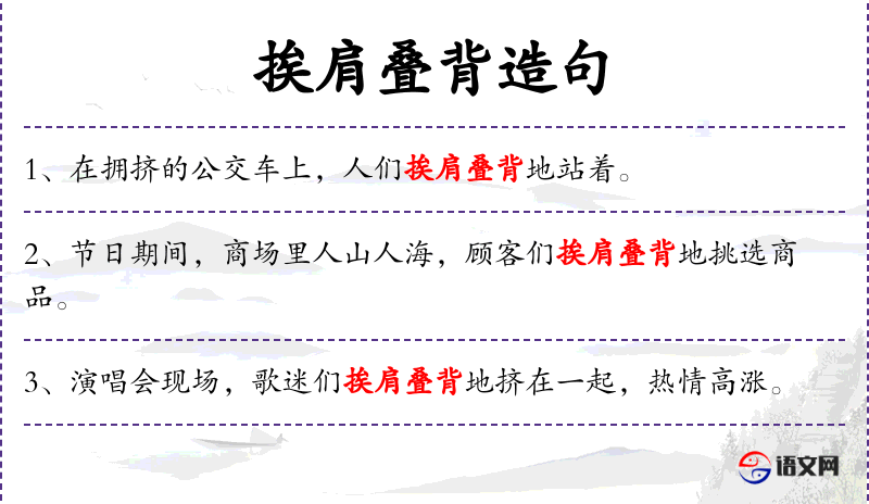 - 英文:句子直接翻译了原句的意思,使用了“shoulder to shoulder”来表达“挨肩叠背”的拥挤感。