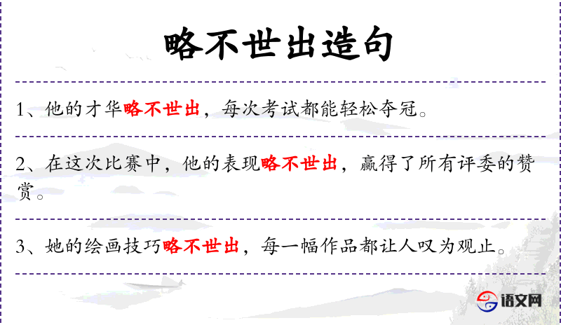 1. 【略不世出】 - 略:计划,谋略;世:时代。谋略高明,世间少有。