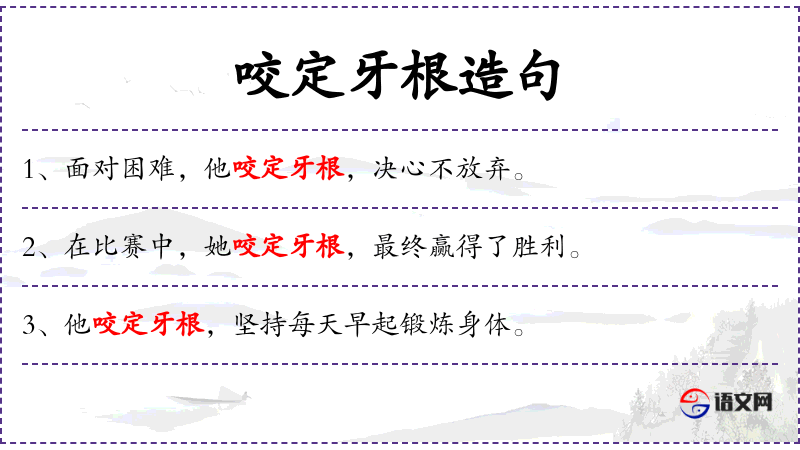 - 咬定牙根:这个成语在**文化中常用来形容面对困难时的坚定决心。