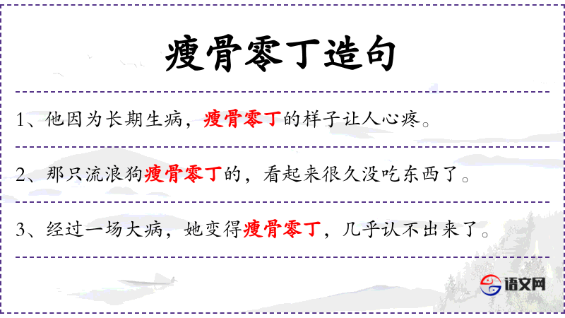 2. 【瘦骨零丁】 - 形容人瘦弱孤单的样子。