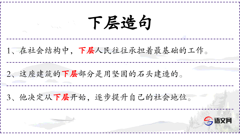 1. 【下层】 下面的一层或几层; 下流;下等。