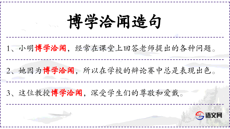 - 博学洽闻:形容词短语,意为知识渊博,见闻广博。