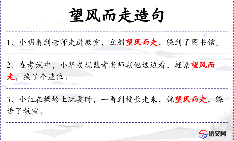 3. 【望风而走】 远远望见对方的气势很盛,就吓得逃跑了。形容十分怯敌。同“望风而逃”。