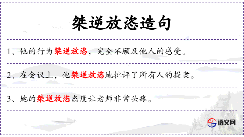 2. 【桀逆放恣】 - 桀:凶暴;放恣:放纵,任性。形容凶暴任性。