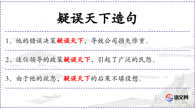 2. 【疑误天下】 - 疑:怀疑。令天下迷惑不解。