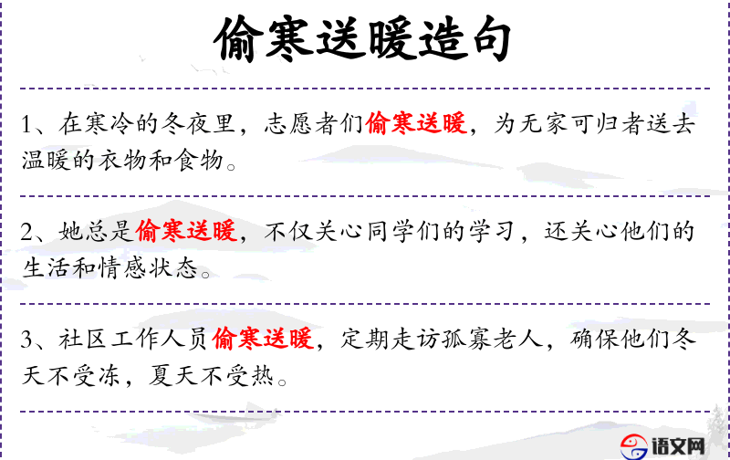 - “偷寒送暖”这个成语体现了中华文化中对互助和关怀的重视。