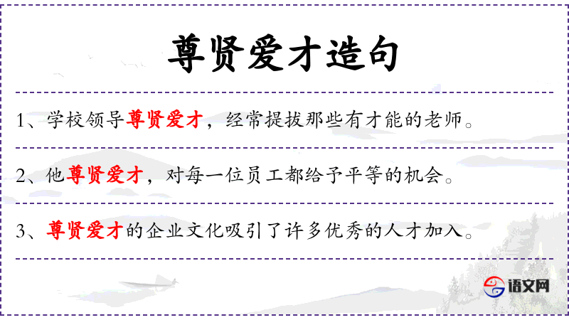 - 尊贤爱才:尊重有才能的人,爱惜人才。