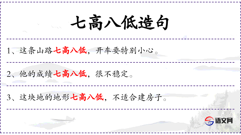 1. 【七高八低】 - 形容道路不平坦。