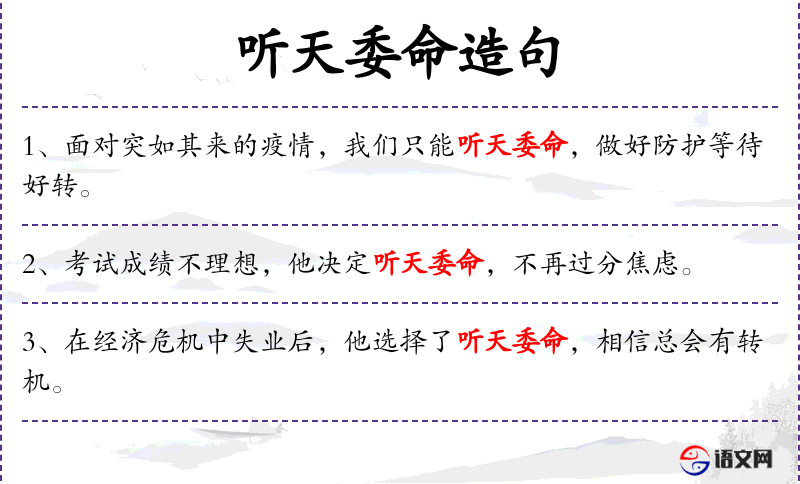 - 听天委命:这个成语源自**传统文化,意味着接受命运的安排,不强求。