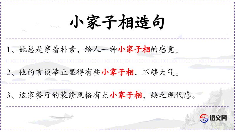 - 补语:给人一种小家子相的感觉