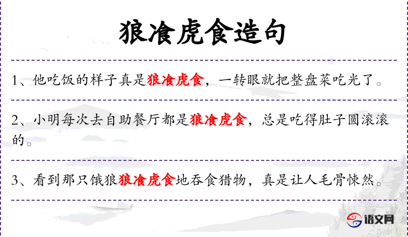 1. 【狼飡虎食】 - 形容吃东西又猛又急。同“狼餐虎咽”。