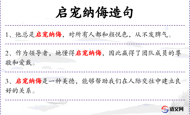 - 礼貌用语:“启宠纳侮”体现了对他人的尊重和理解,是一种礼貌的表现。
