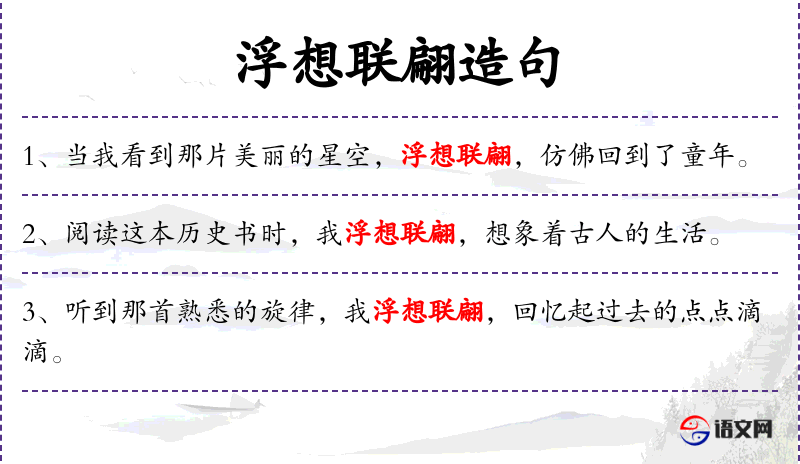 5. 【浮想联翩】 - 浮想:飘浮不定的想象;联翩:鸟飞的样子,比喻连续不断。指许许多多的想象不断涌现出来。
