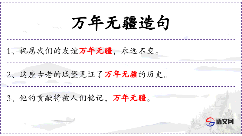 1. 【万年无疆】 - 形容年代久远。同“万世无疆”。