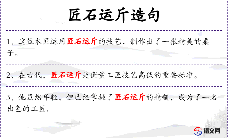 - 匠石运斤:这个词组可能蕴含了对传统工艺和工匠精神的尊重。在**文化中,石雕艺术有着悠久的历史,被视为一种高雅的艺术形式。