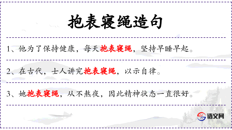 - 抱表寝绳:成语,意为严格遵守时间,按时休息。