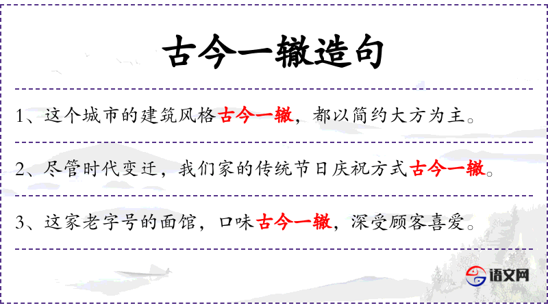 - 古今一辙:古今相同,表示无论古代还是现代,风格一致。