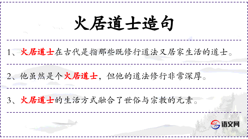 4. 【火居道士】 指有家庭妻儿的道士。