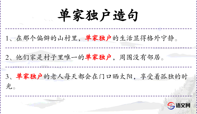 句子:“那个单家独户的小屋,在冬日里显得格外温暖。”