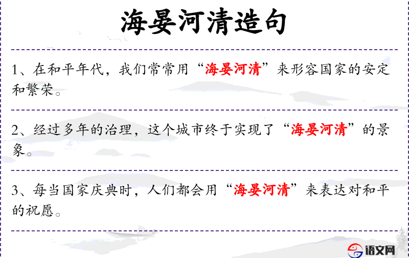 1. 【海晏河清】 - 晏:平静。黄河水清了,大海没有浪了。比喻天下太平。