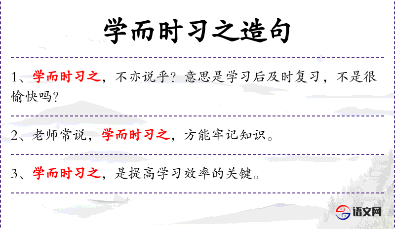 1. 【学而时习之】 学过的内容要经常复习它。
