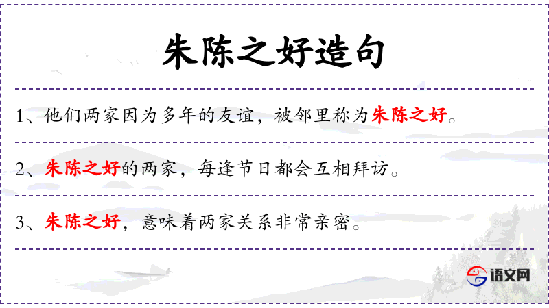 3. 【朱陈之好】 - 表示两家结成姻亲。