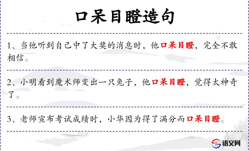 - 谓语:口呆目瞪,激动得说不出话来