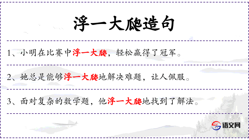 3. 【浮一大瓟】 - 浮:违反酒令被罚饮酒;瓟:同“匏”,匏瓜。原指罚饮一大杯酒。后指满饮一大杯酒。