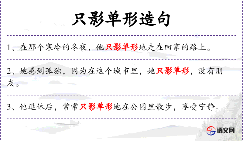 - 只影单形:成语,形容孤独一人。