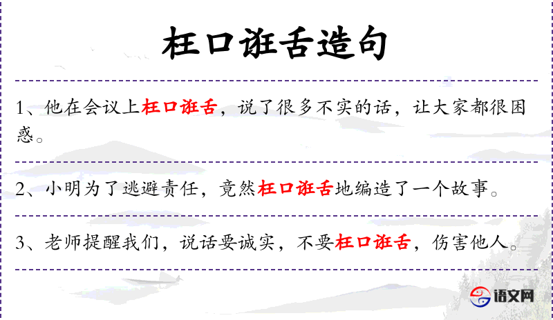 4. 【枉口诳舌】 - 比喻肆意胡说。多指造谣生事。同“枉口拔舌”。